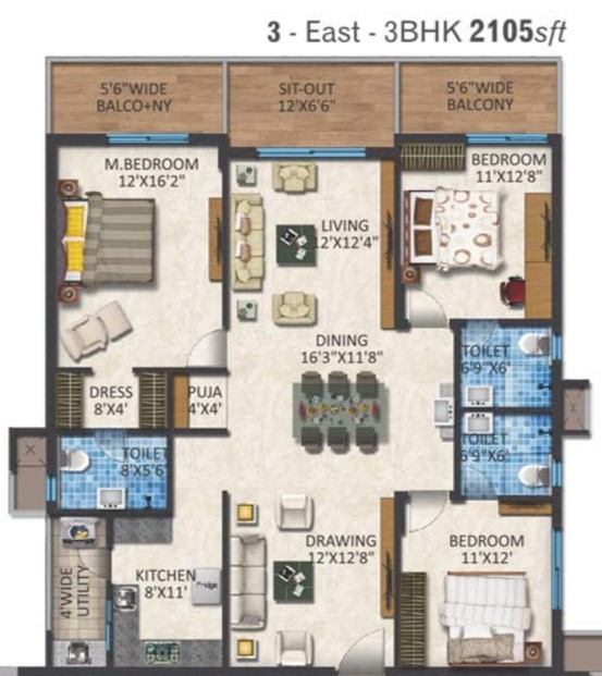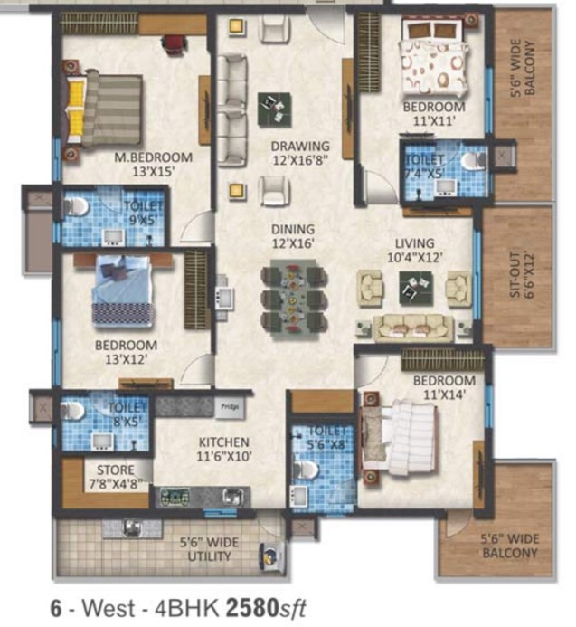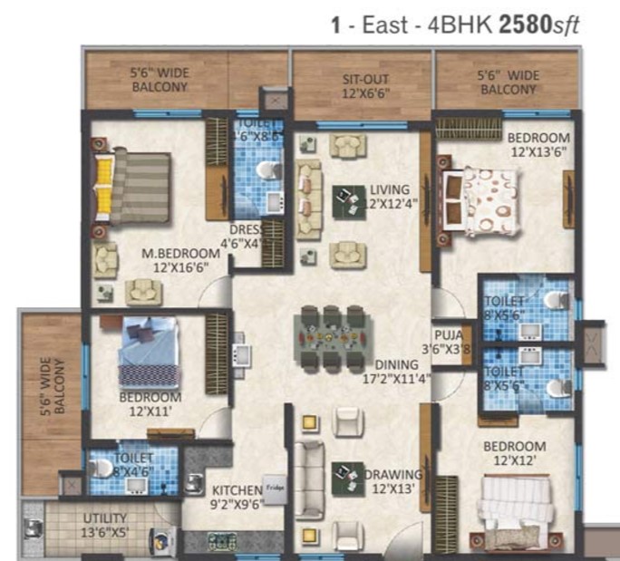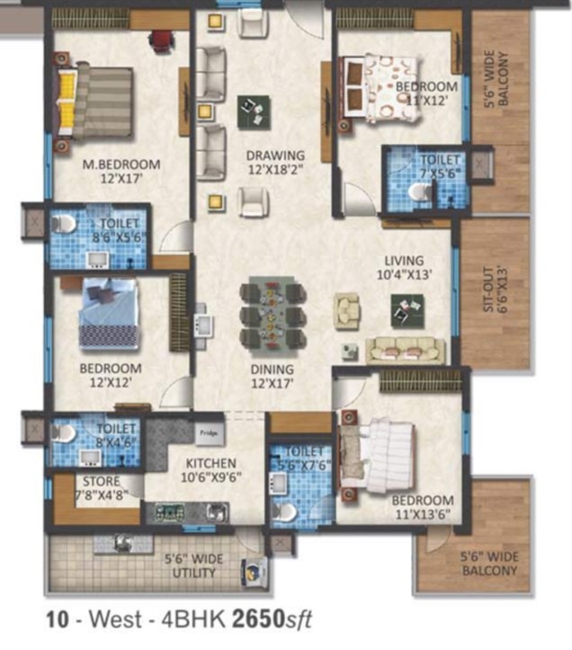 • Niharika Skyline 2, 3 & 4BHK Flats range from 1295 to 2650 sft.